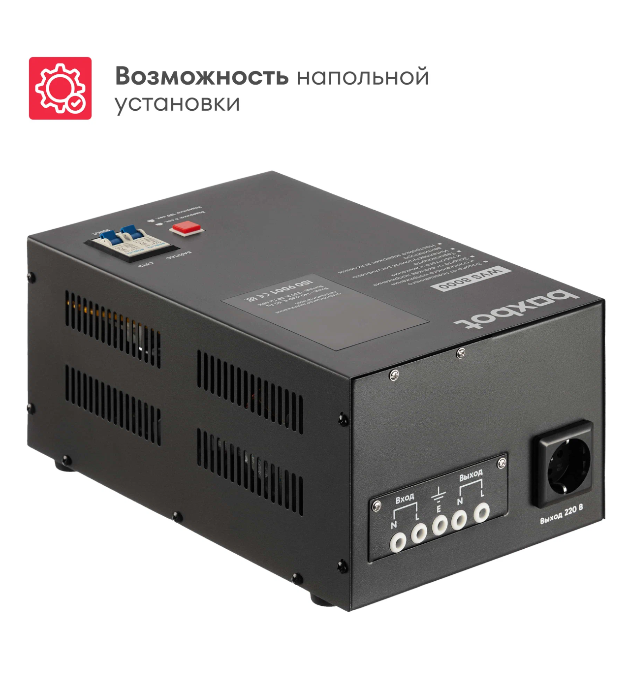 | NAZNAZHENIE | Стабилизатор напряжения автоматический Boxbot WVS 8000, 8 кВт, клеммник+розетка, настенный/напольный, LCD-дисплей, настройка задержки, байпас | |