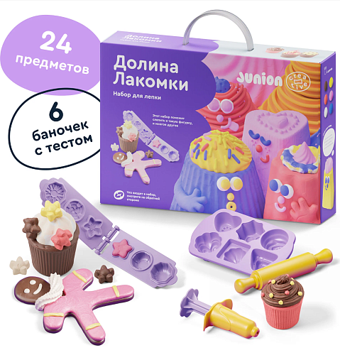 Набор для лепки печенья и капкейков Junion Creative "Долина Лакомки", тесто-пластилин, 6 цветов, 24 предмета